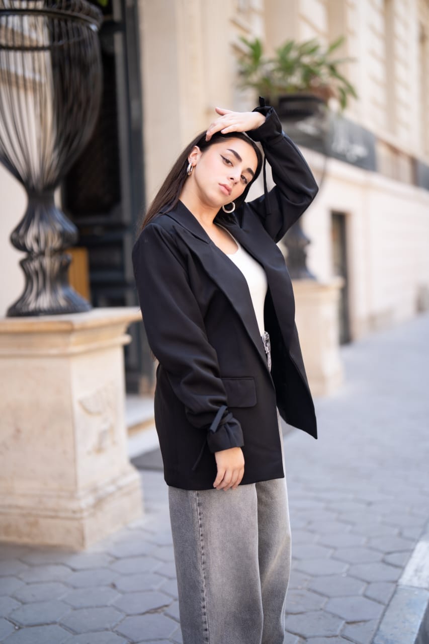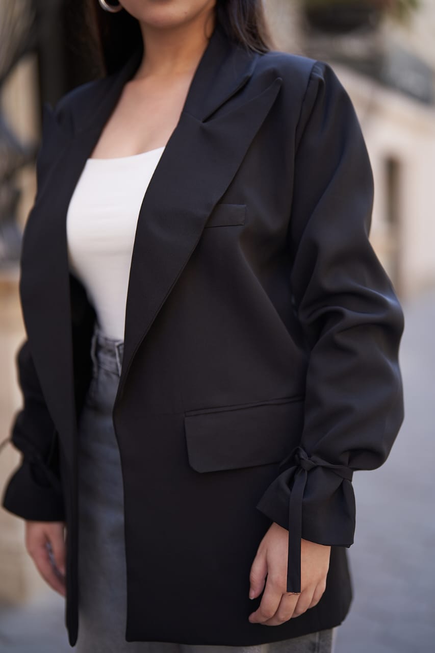 Black Tie-Waist Blazer