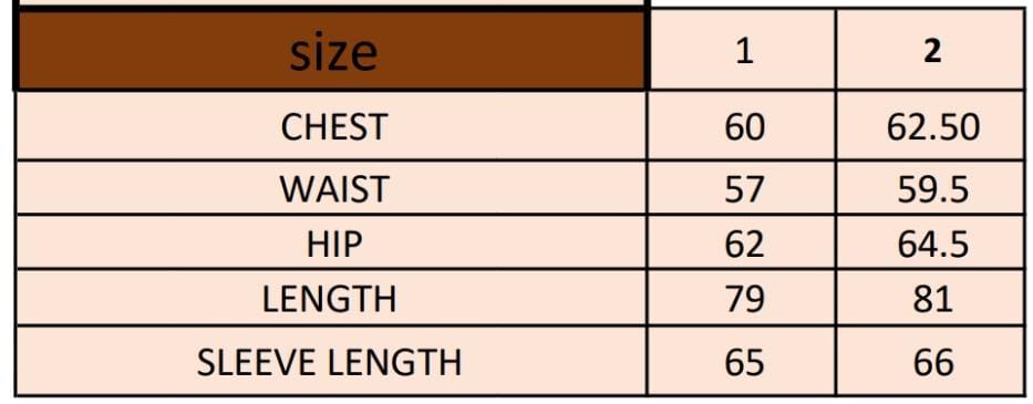 | SLEEVE LENGTH | 65 | 66 |