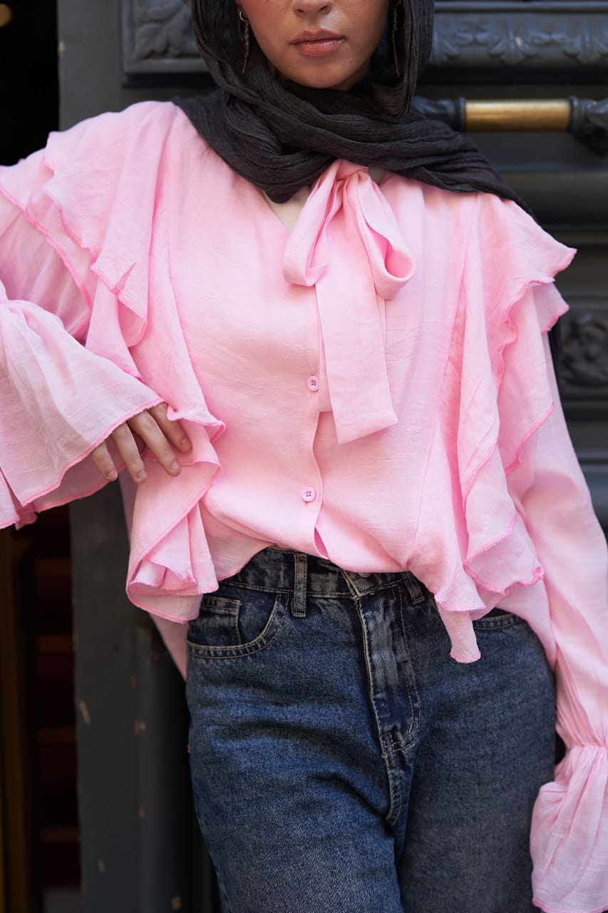 Ruffle Sleeve Pink Blouse